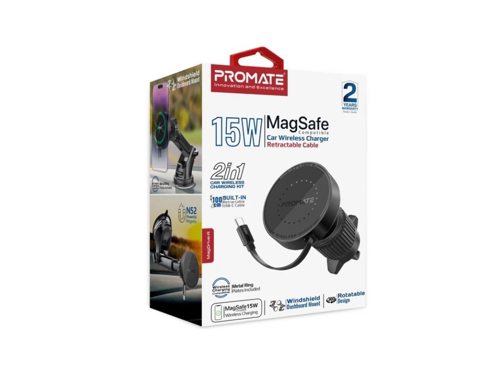 Užijte si nebývalé pohodlí při jízdě s MagDrive-R, vaším ultimátním 15W držákem do auta kompatibilním s MagSafe a navrženým pro bezproblémové napájení na cestách. Ať už je namontován na ventilaci AC, na palubní desce nebo na čelním skle, jeho navíjecí kabel USB-C lze pohodlně přizpůsobit vaší preferované délce a zajistit tak úhledné uspořádání bez nepořádku. MagDrive-R se vyznačuje rychlou a bezpečnou montáží s magnety ze vzácných zemin N52 a inovativním designem proti otřesům a slibuje stabilní držení a snadné otáčení o 360° bez kolébky pro optimální pozorovací úhly. MagDrive-R, vyrobený z odolných materiálů a postavený s pokročilými bezpečnostními funkcemi, jako je detekce cizích předmětů (FOD), ochrana před přebíjením a přehřátím, nově definuje spolehlivost a výkon v bezdrátovém nabíjení v autě. Jezděte s jistotou a vždy zůstaňte nabití.