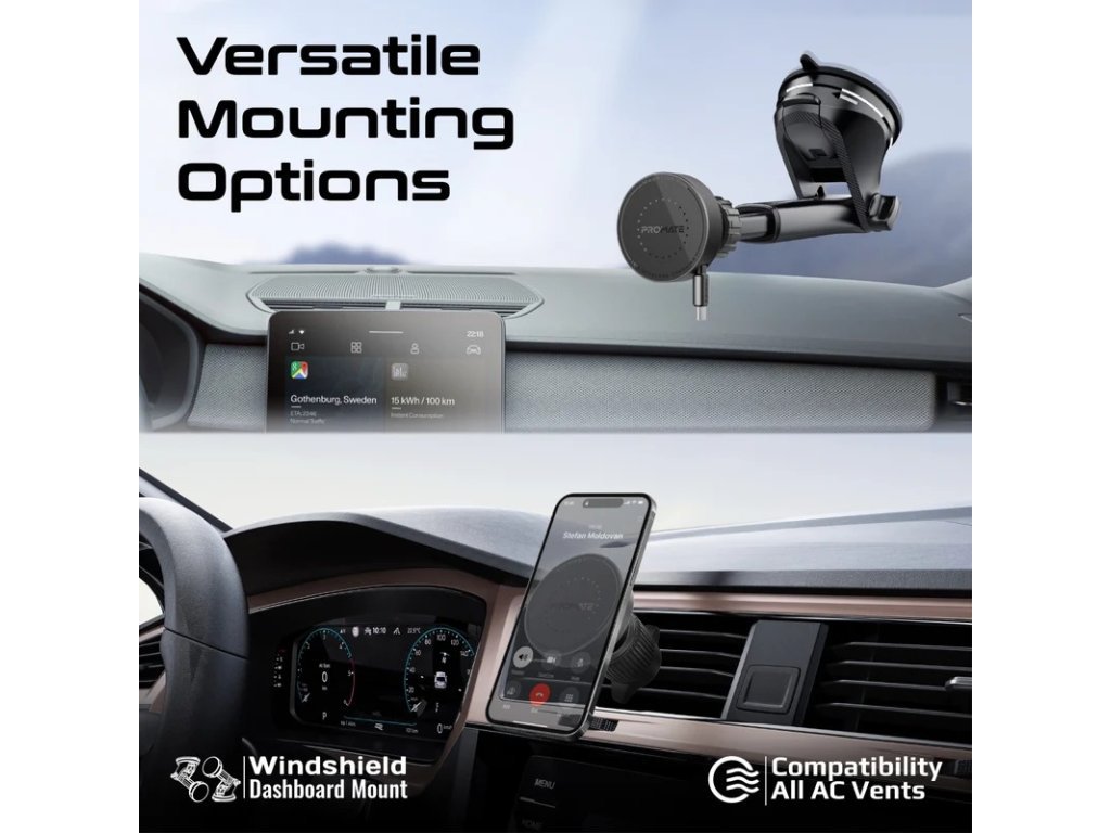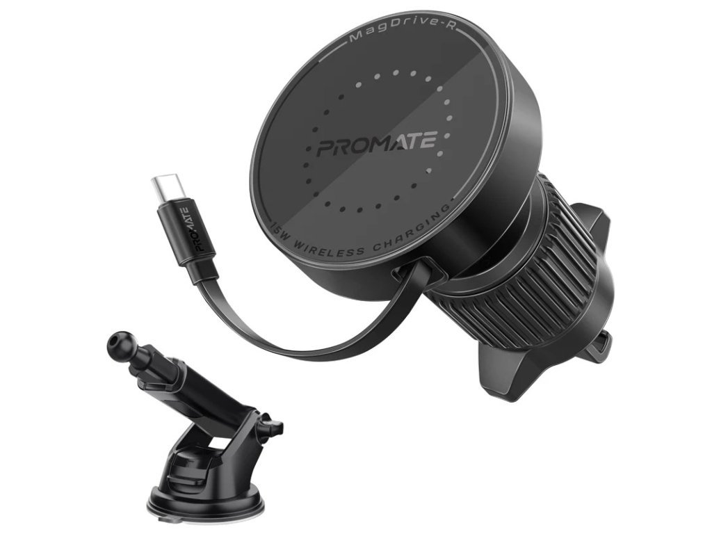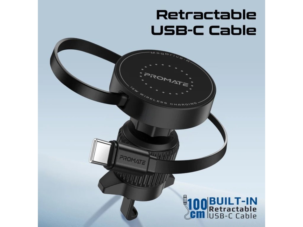 PROMATE MagDrive-R bezdrátová nabíječka do auta kompatibilní s MagSafe se zatahovacím kabelem, 15 W