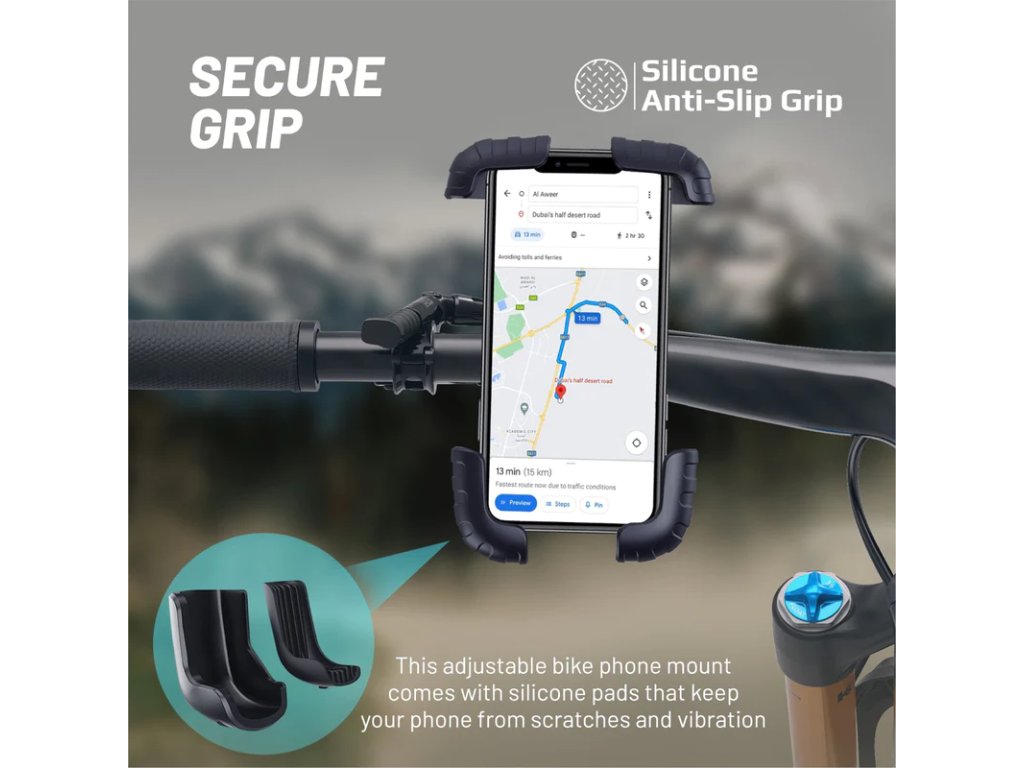 BikeMount-2, ideální řešení pro rychlou, snadnou a bezpečnou montáž vaší GPS jednotky, iPhonu nebo smartphonu na vaše kolo. Tento univerzální držák na kolo nabízí díky svým bezpečným a stabilním svorkám vynikající ochranu vašeho zařízení při jízdě na kole.