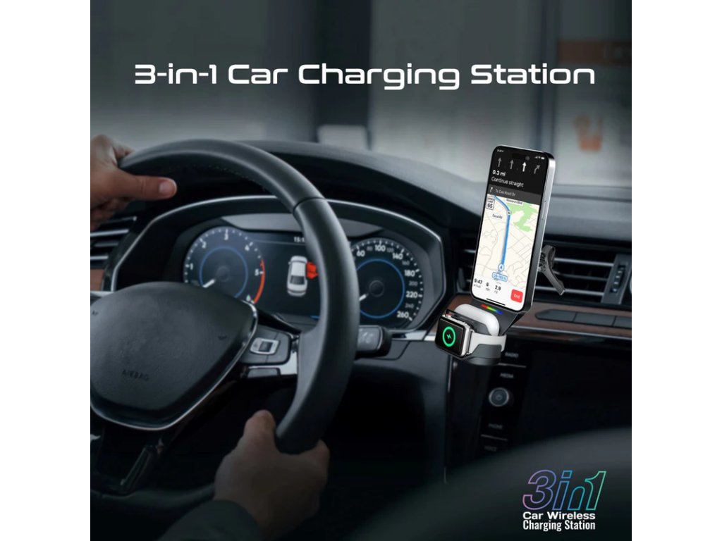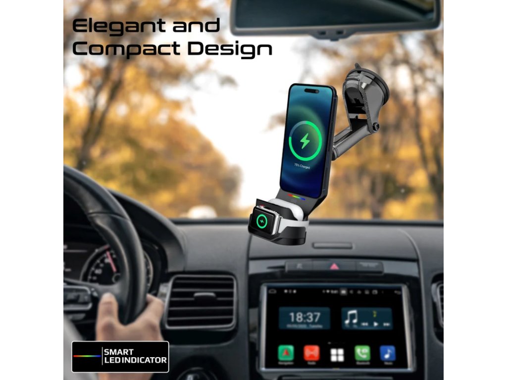 Představujeme MagDrive-Trio, dokonalou nabíjecí stanici do auta 3 v 1 navrženou tak, aby splňovala všechny vaše potřeby energie na cestách během jízdy. Díky svým všestranným možnostem montáže na čelní sklo, palubní desku nebo ventilaci AC udrží MagDrive-Trio vaše zařízení během jízdy na dosah. Kompatibilita s MagSafe zajišťuje bezproblémové připojení pro váš iPhone, zatímco 15W bezdrátová nabíječka telefonu jej rychle nabije. Navíc s 4,5W bezdrátovou nabíječkou AirPods a 3,5W bezdrátovou nabíječkou hodinek můžete mít všechna svá základní zařízení Apple nabitá současně. Jeho elegantní design doplní každý interiér vozu a barevná LED kontrolka dodá příjemnou atmosféru. Navíc s přiloženým 1m kabelem máte vše, co potřebujete pro bezproblémové nabíjení na cestách. MagDrive-Trio: kde se snoubí všestrannost a pohodlí.