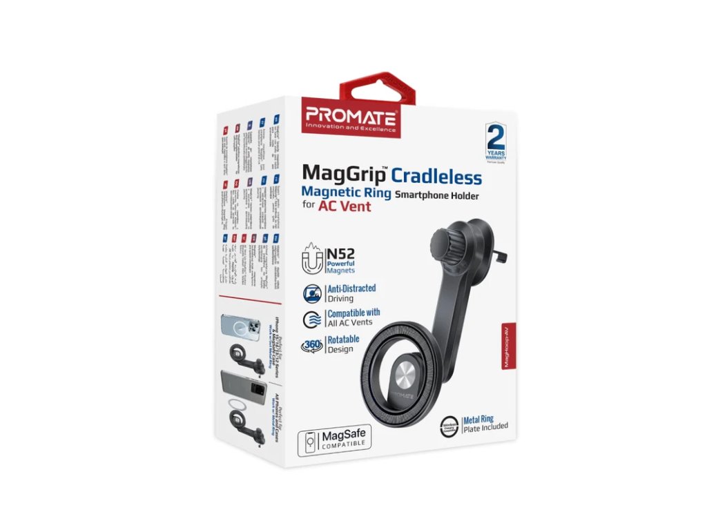 PROMATE MagHoop-AV držák na mobil do ventilace auta MagGrip™, s magnetickým kroužkem, černý
