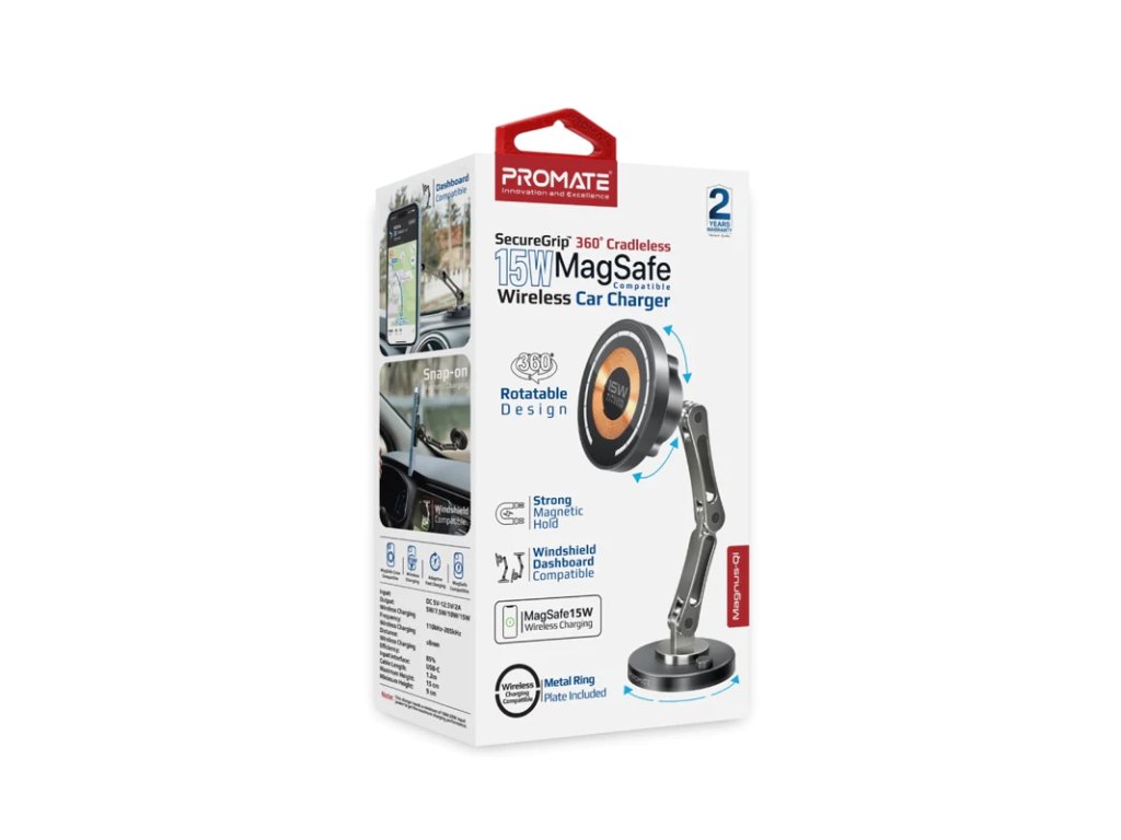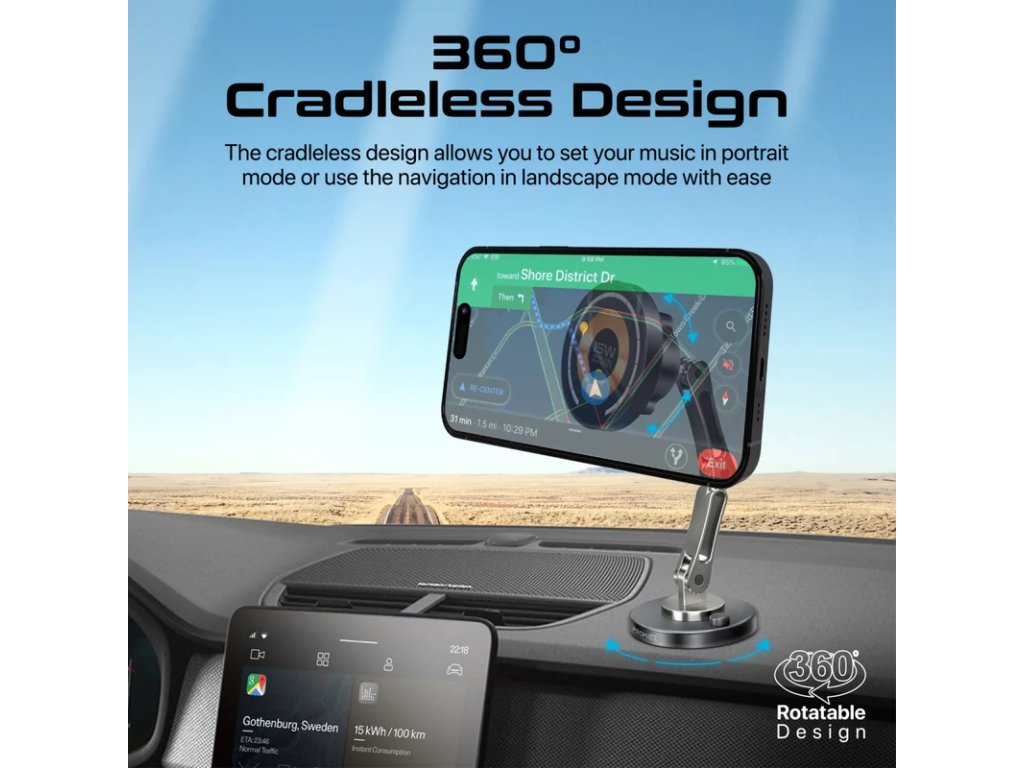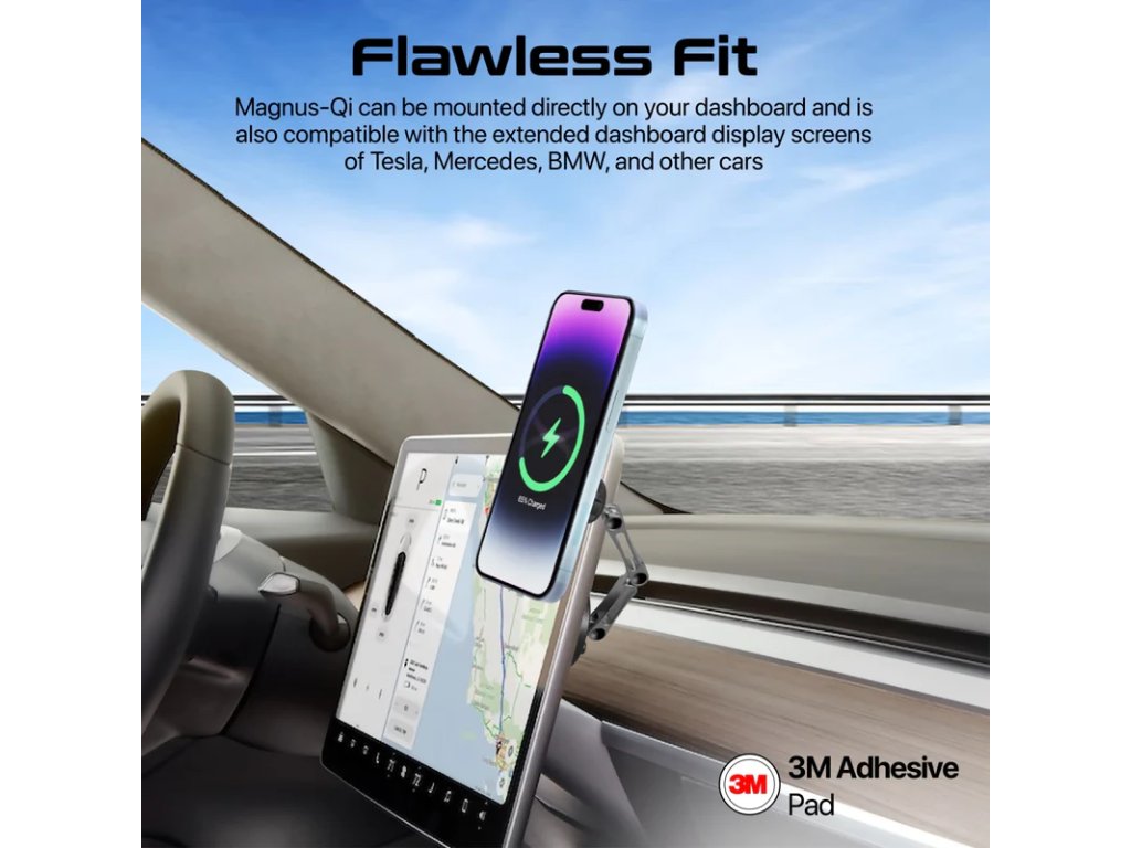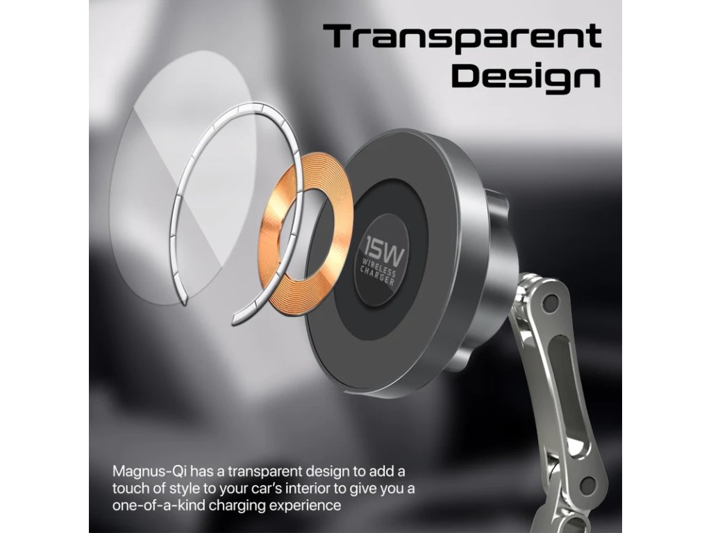 Magnus-Qi je úžasný 15W bezdrátový držák do auta kompatibilní s MagSafe a perfektní nabíjecí řešení, navržené tak, aby vylepšilo váš zážitek z jízdy. 360° bezkolébkový design spojený s tříosým výškově nastavitelným ramenem poskytuje nekonečné pozorovací úhly. Tento elegantní držák do auta s jedinečným průhledným designem a hliníkovým ráfkem z něj dělá perfektní doplněk pro váš vůz. Magnus-Qi lze namontovat přímo na vaši palubní desku a je také kompatibilní s rozšířenými obrazovkami palubní desky vozů Tesla, Mercedes, BMW a dalších automobilů, aniž byste se museli obávat, že spadnou i za drsných jízdních podmínek. Usnadněte si cestu a napájejte svůj smartphone pro každé dobrodružství s Magnus-Qi.