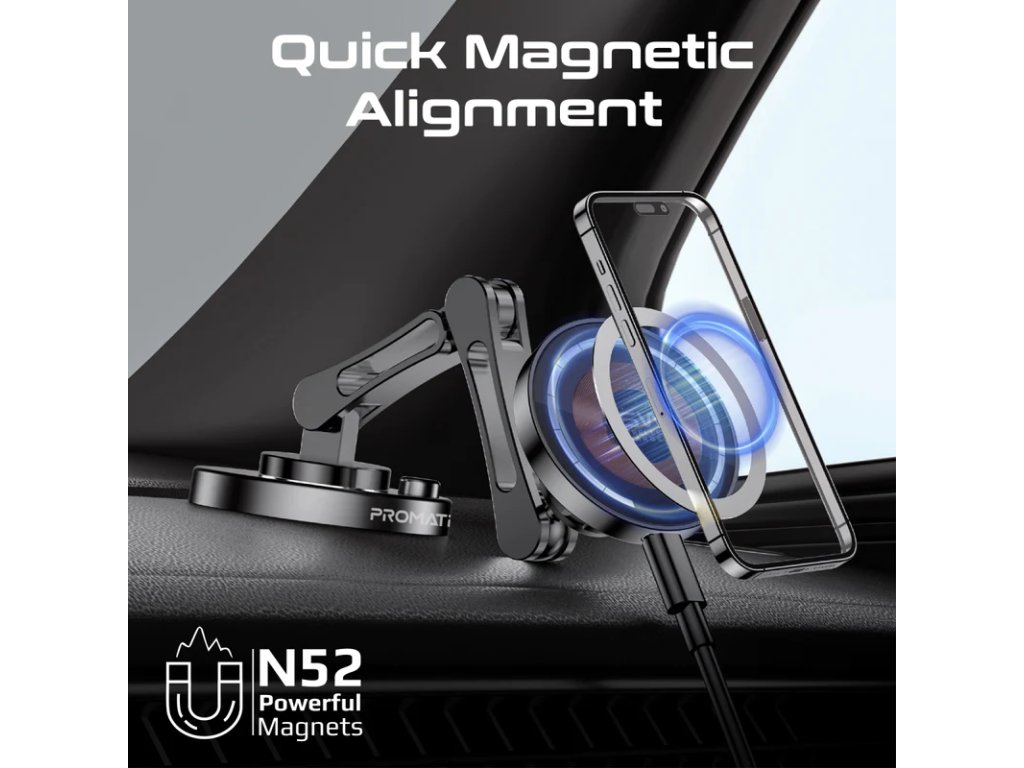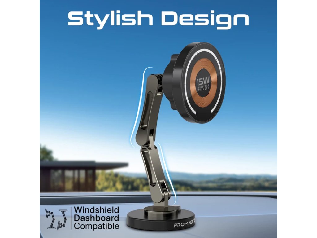 PROMATE Magnus-Qi magnetická bezdrátová autonabíječka s ramenem, MagSafe, 15 W