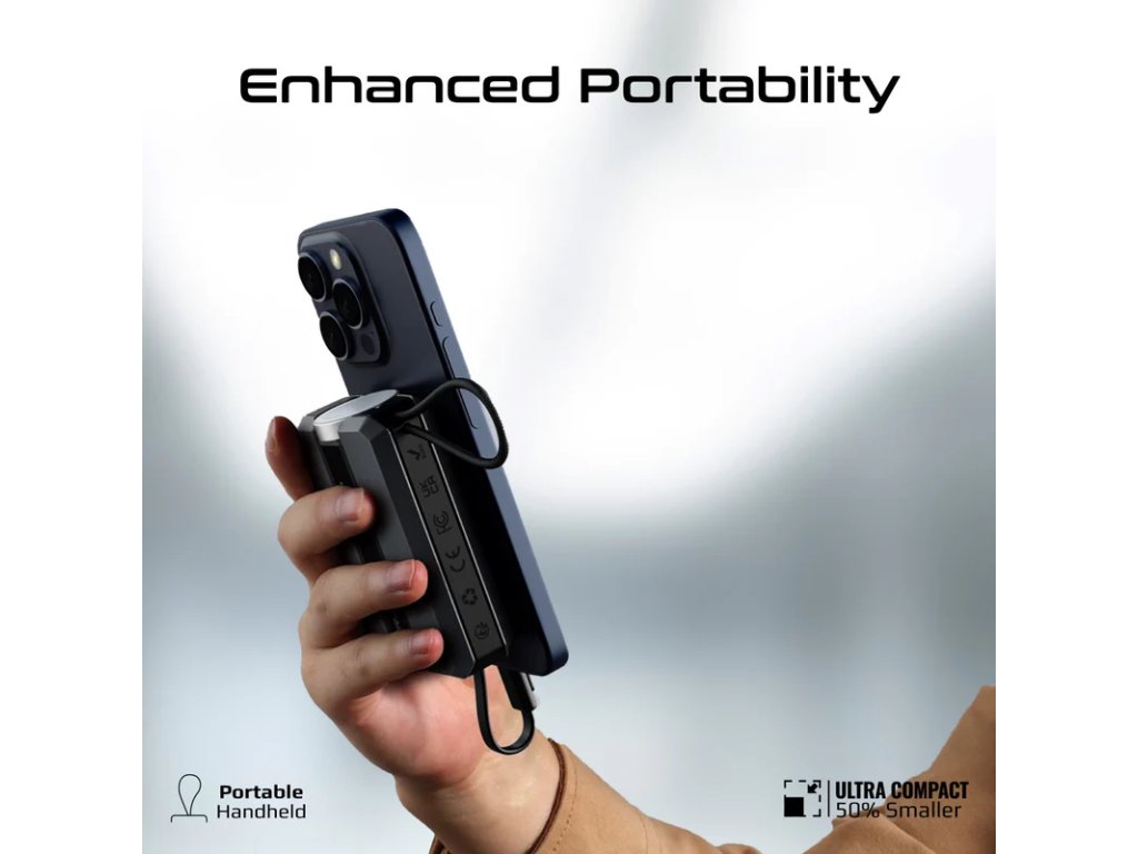 Neo-10 je ztělesněním přenosného napájení s robustní baterií 10 000 mAh a prémiovým designem pro lepší zážitek z nabíjení zařízení na cestách. S integrovaným nabíjecím modulem Apple Watch a prodlužovacím textilním opleteným kabelem nabízí Neo-10 rychlé a pohodlné nabíjení 2,5 W. Port 30W Power Delivery zajišťuje rychlé nabíjení zařízení USB-C, doplněný o vestavěný kabel USB-C, který eliminuje potřebu dalších kabelů. Bezpečnost je nedílnou součástí, takže Neo-10 je dodáván se systémem Multi Protect, který chrání vaše zařízení, zatímco chytrá LED obrazovka vás informuje o úrovni baterie. Se svým ultrakompaktním designem a nabíjecím kabelem Apple Watch zdvojeným jako praktická rukojeť je Neo-10 dokonalým spojením výkonu a přenosnosti.