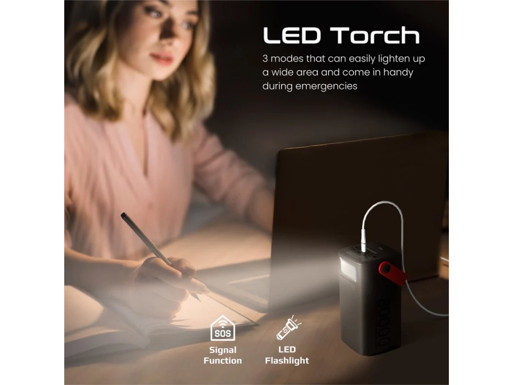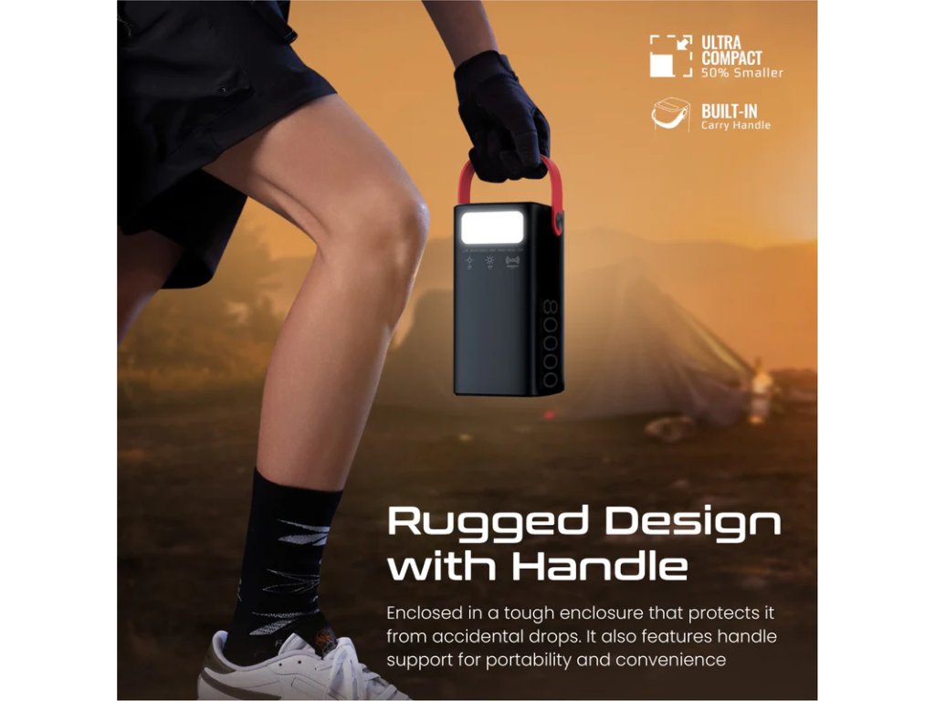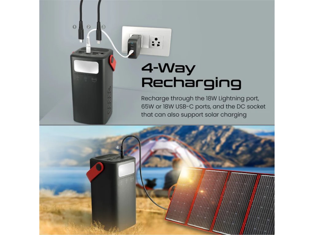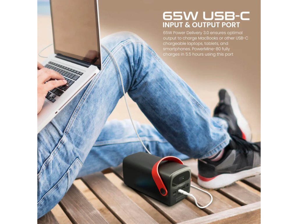 PowerMine-80 je výkonná 80000mAh powerbanka pro všechny vaše potřeby nabíjení mimo síť. Nabíjejte svůj notebook USB-C pomocí vstupního/výstupního portu 65W Power Delivery 3.0 nebo nabíjejte svůj smartphone a tablety závratnou rychlostí prostřednictvím portu 15W Power Delivery 3.0. Když se PowerMine-80 vybije, plně jej nabijete za pouhých 5,5 hodiny přes 65W USB-C port. Navíc můžete dobíjet také pomocí Lightning portu, 18W USB-C vstupního portu nebo přes DC zásuvku, která také podporuje solární nabíjení pomocí solárního panelu. PowerMine-80 má také LED lampu, která má 3 režimy a dokáže snadno rozzářit širokou oblast. Tato powerbanka je nabitá a ideální pro napájení více zařízení a zároveň je dokonalým společníkem pro jakékoli dobrodružství.