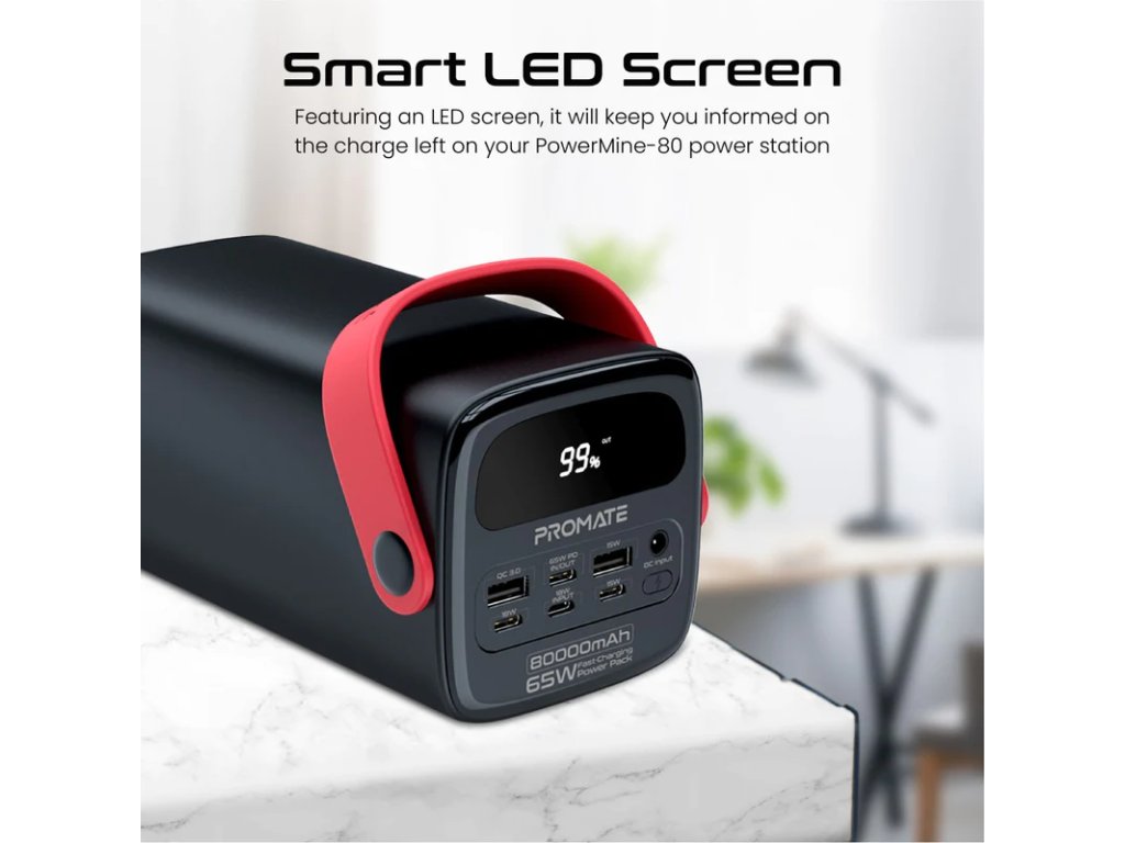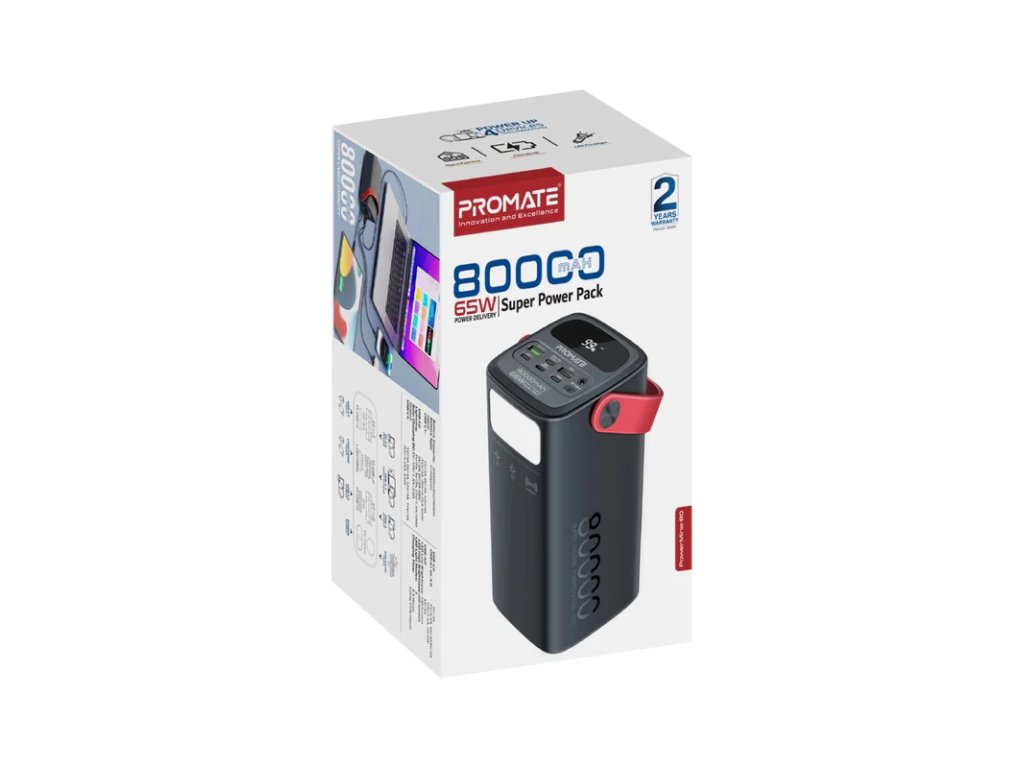 PROMATE PowerMine-80 powerbanka USB-C, USB-A, Lightning, PD&QC, 80 000 mAh, 65 W
