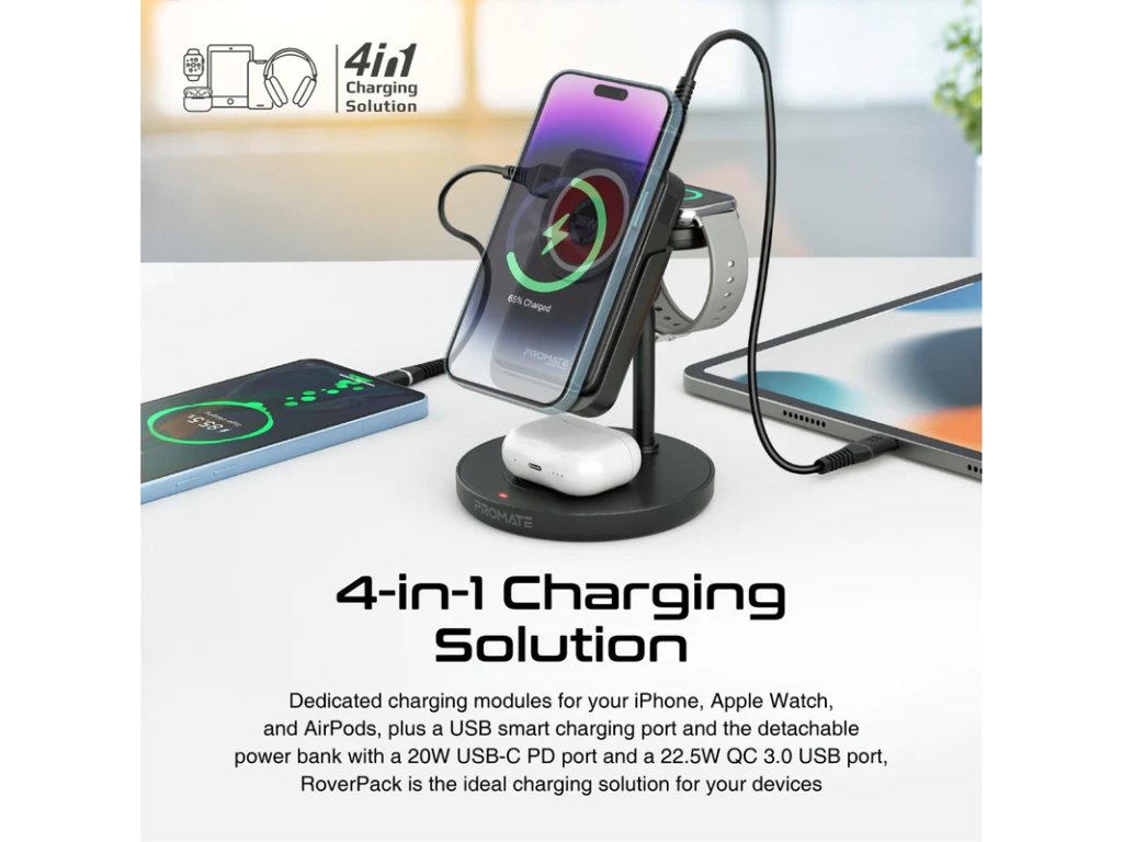 PROMATE RoverPack nabíjecí stanice 4v1, PD&QC, s powerbankou 10 000 mAh