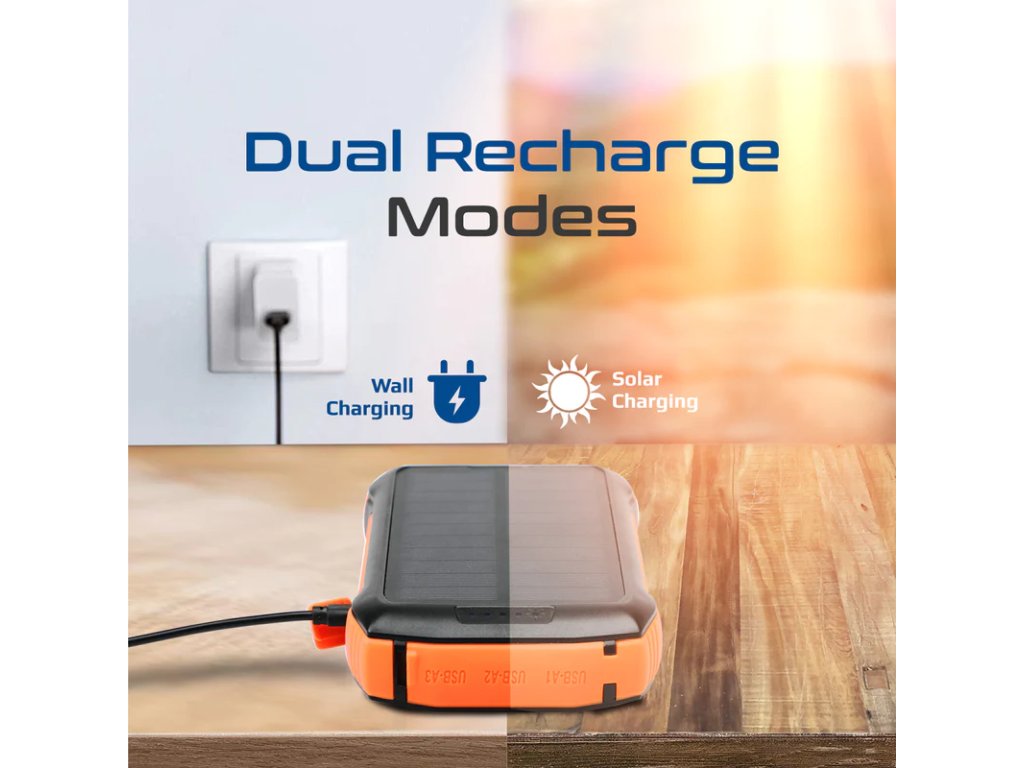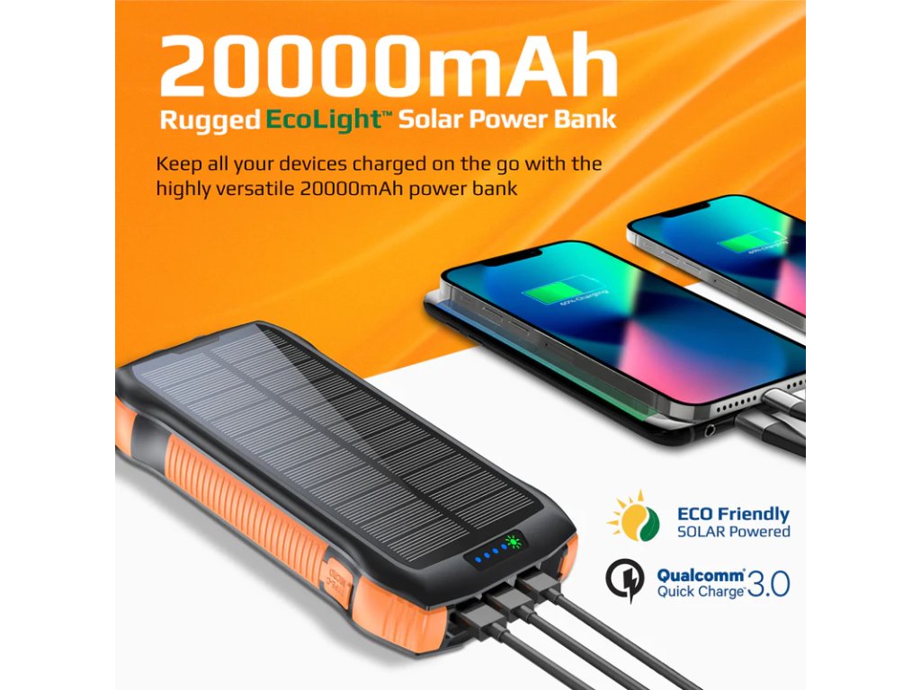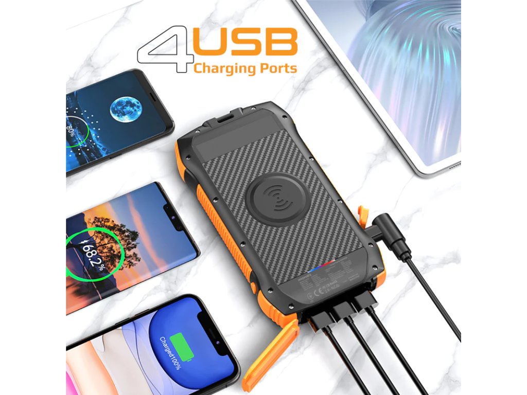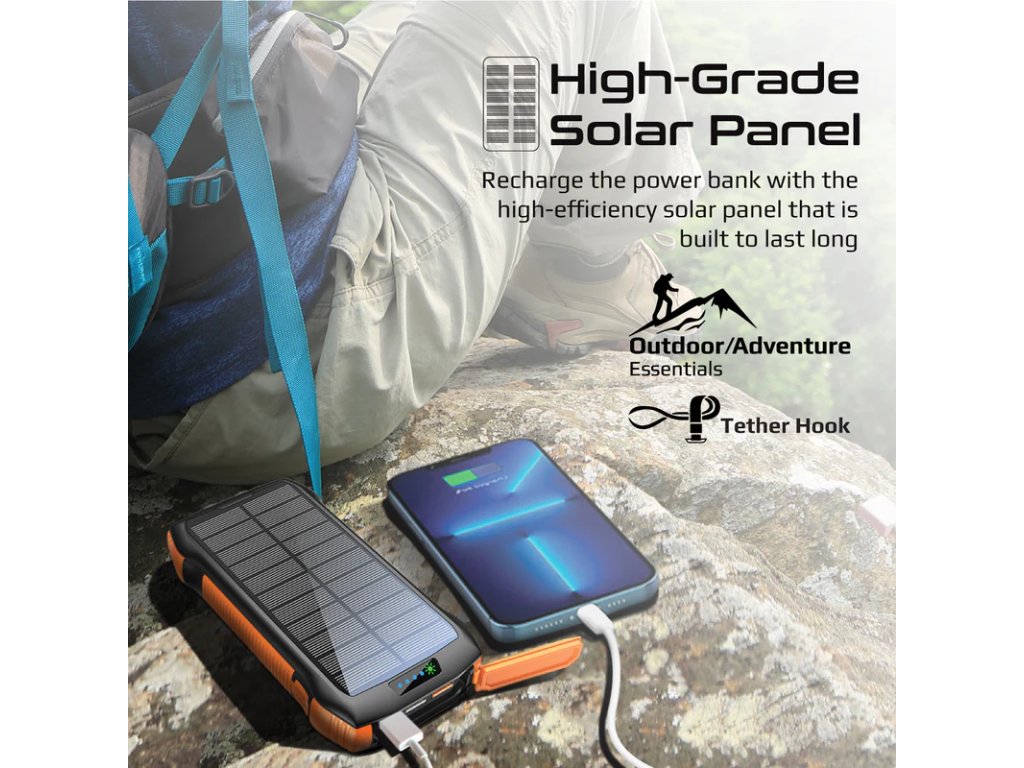 Udělejte si své výlety a outdoorové aktivity nabité vysokokapacitní 20000mAh bateriovou power bankou s integrovaným LED světlem a bezdrátovým nabíjením. SolarTank-20PDQi má vestavěný vysoce kvalitní solární panel, který vám umožní nabíjet powerbanku vyšší rychlostí, i když jste venku. Powerbanku můžete také přeměnit na přenosné LED světlo, což z ní dělá jednu z nejuniverzálnějších powerbank.