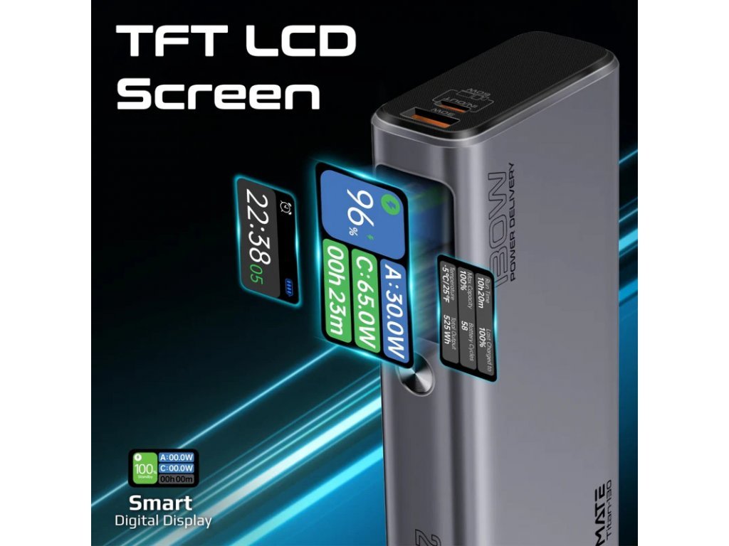Titan-130 je váš dokonalý výkonný společník s robustní 20000mAh lithium-iontovou baterií pro přenosné nabíjení. Tato tenká a lehká powerbanka, která se může pochlubit 30W portem USB-A Quick Charge 3.0 a dvěma vstupními/výstupními porty 60W a 100W USB-C Power Delivery 3.0, rychle nabije 3 vaše zařízení. Tato elegantní powerbanka s pohodlnou obrazovkou TFT LCD a kovovou konstrukcí zajišťuje bezpečné a efektivní řízení spotřeby pro každé vaše dobrodružství. Uvolněte sílu: Titan-130 je vaše kompaktní síla pro neomezené nabíjení na cestách.