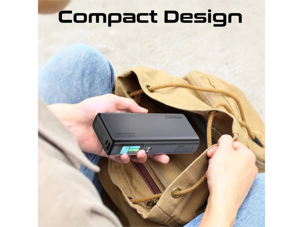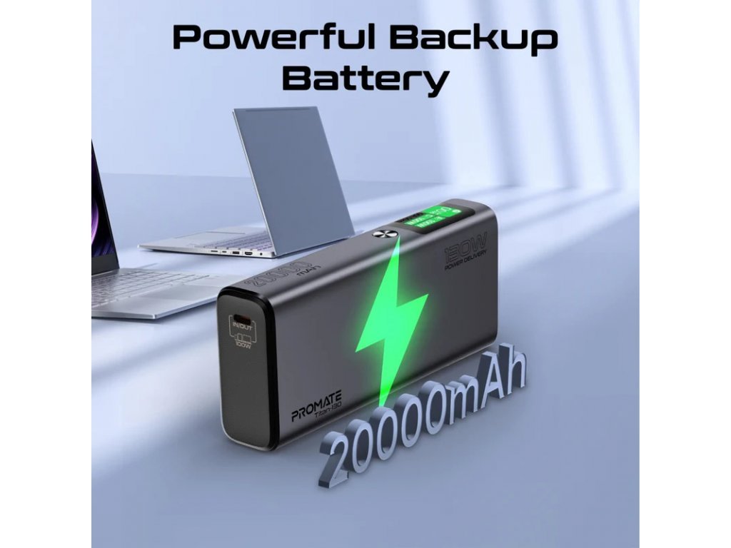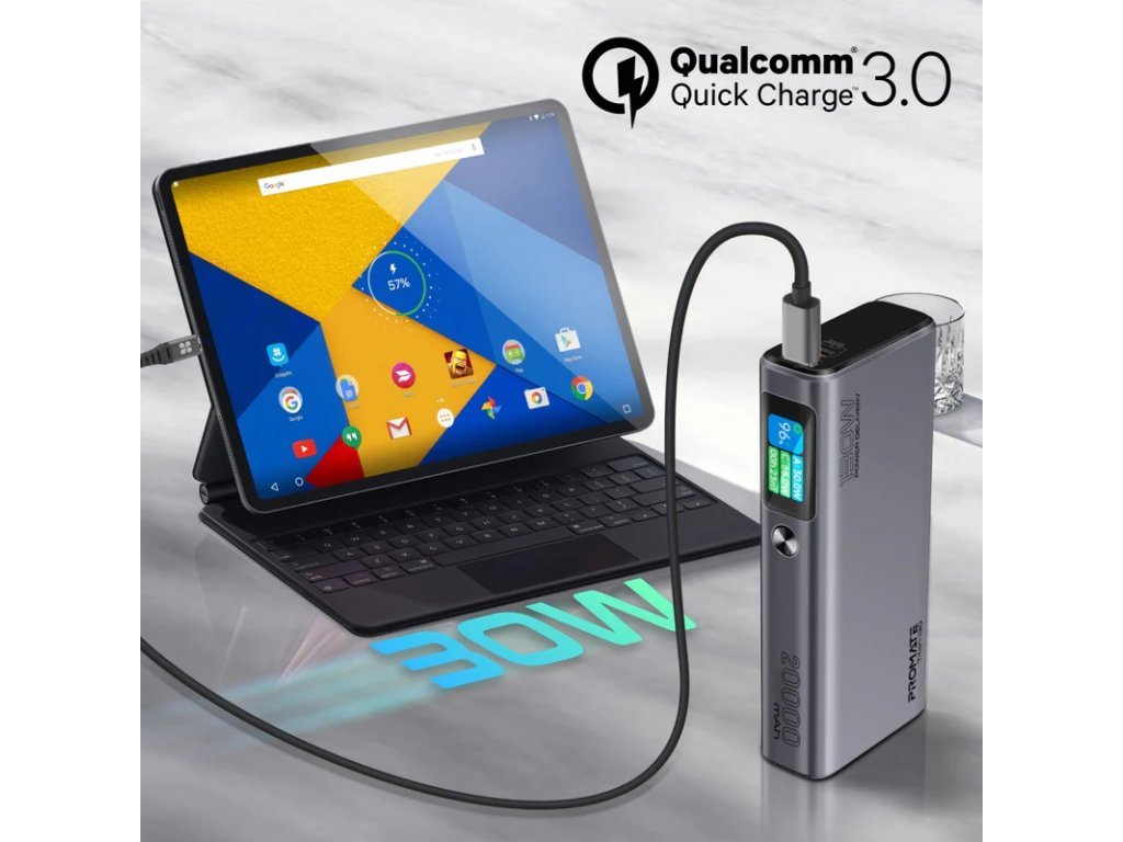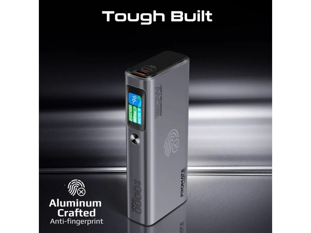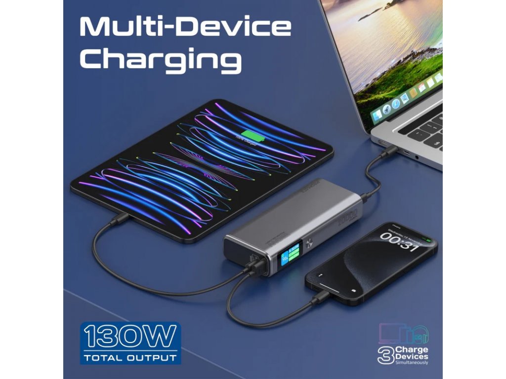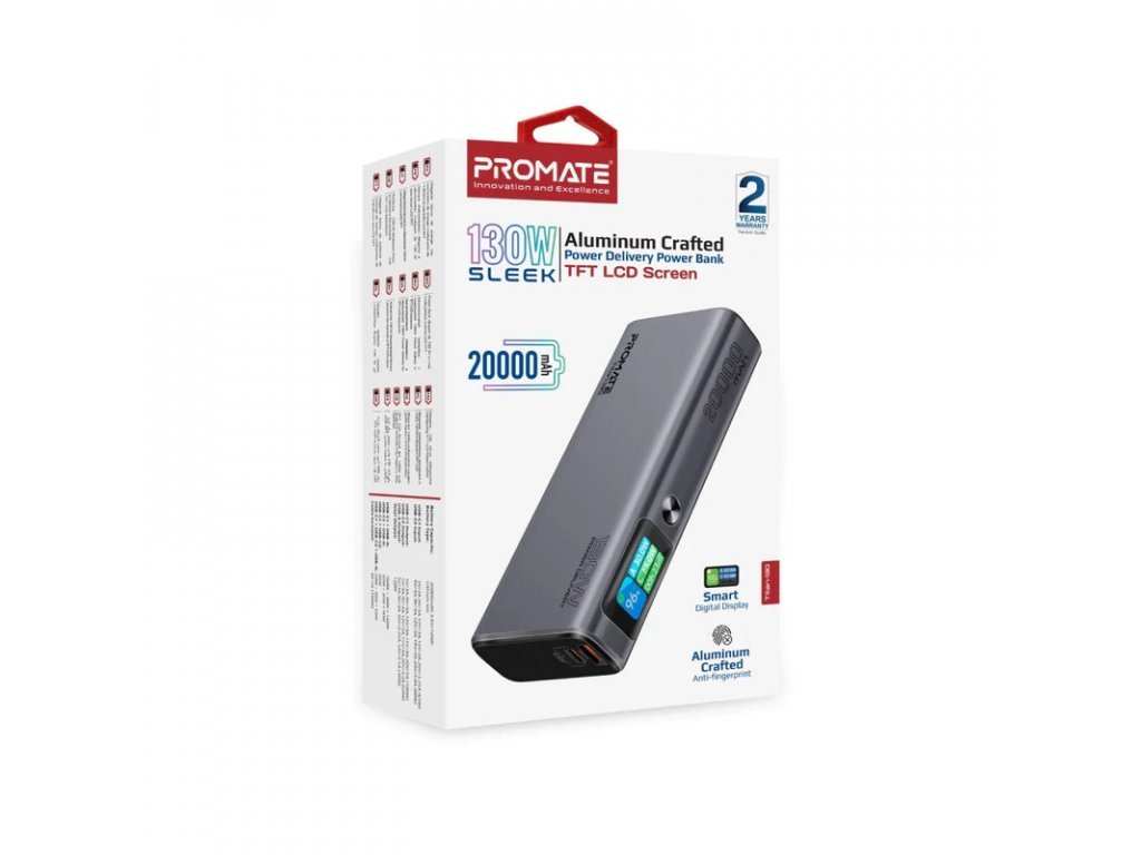 PROMATE Titan-130 powerbanka s TFT LCD obrazovkou, 2x USB-C, USB-A, 20 000 mAh, 130 W