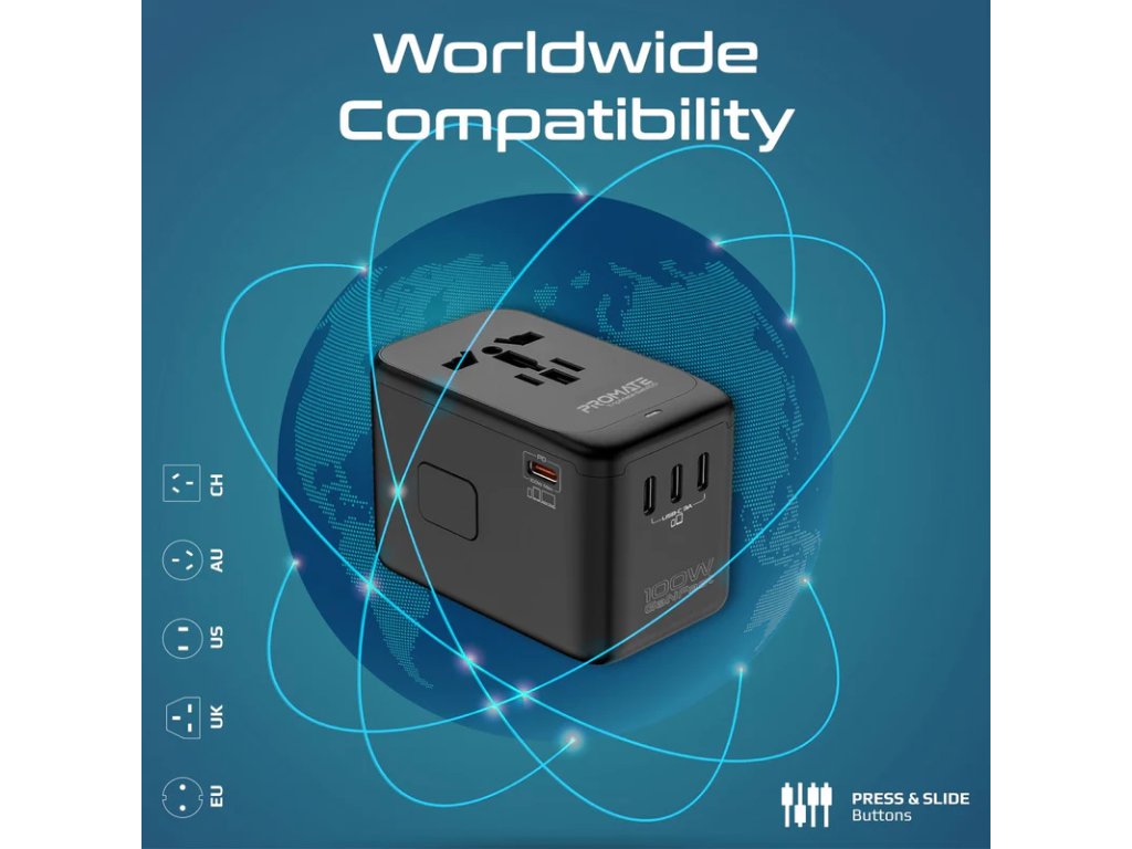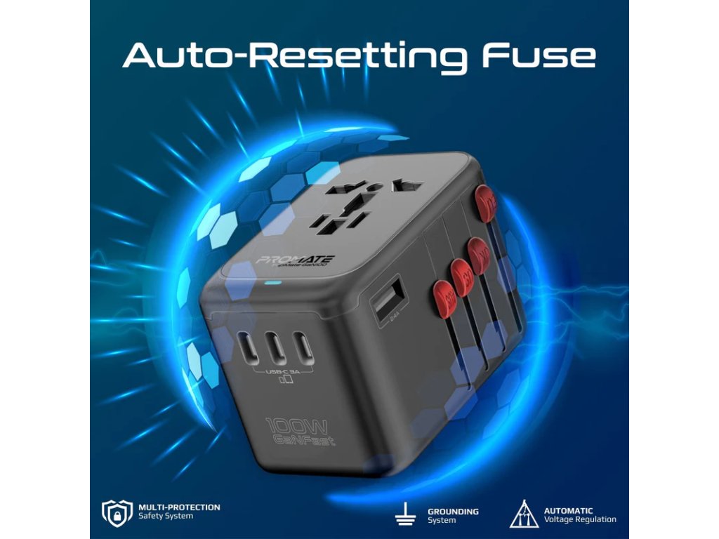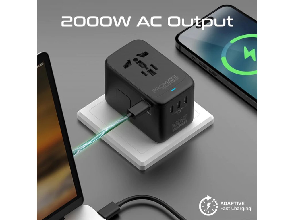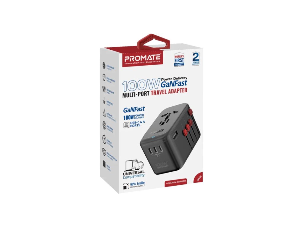 TripMate-GaN100 poskytuje veškerý výkon, který potřebujete, ať už doma, na dovolené nebo v kanceláři. Díky technologii nitridu galia TripMate-GaN100 poskytuje efektivní nabíjení, zatímco pojistka s automatickým resetem udržuje vaše zařízení v bezpečí. Tento cestovní adaptér, který se může pochlubit 2000W AC zásuvkou, 4 porty USB-C Power Delivery a portem USB-A QC 3.0, vám umožní současně nabíjet USB-C a USB nabíjecí notebooky, smartphony, tablety atd. a napájet mnoho spotřebičů. Adaptér je ideální pro časté cestovatele a využívá inovativní design vysouvací zástrčky a je kompatibilní s více než 180 zeměmi po celém světě.