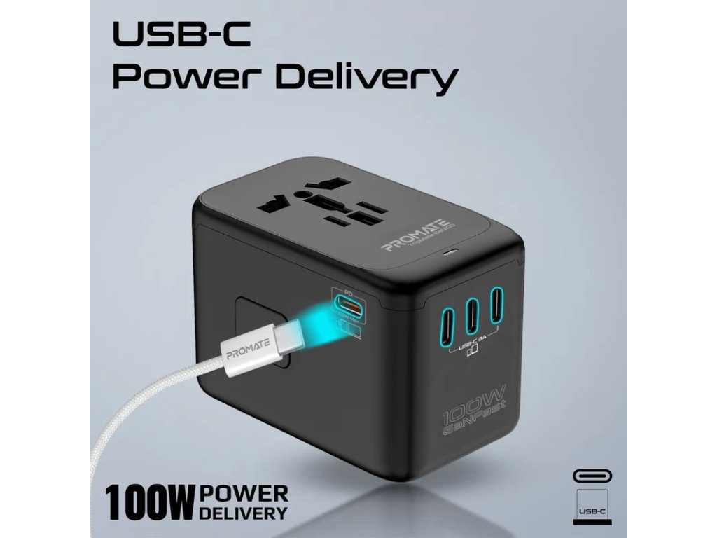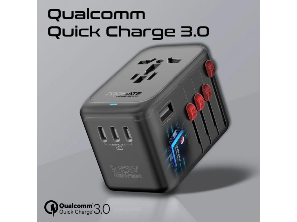 PROMATE TripMate-GaN100 cestovní nabíječka s GaN, 4x USB-C, USB-A, 100 W